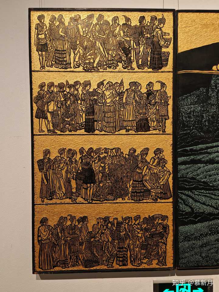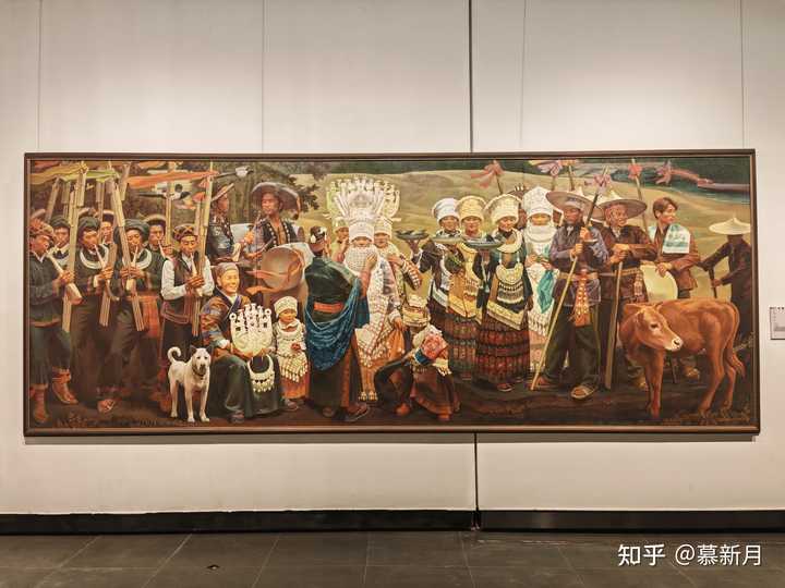 这张画是贵州美术馆展览的一张画。讲的是苗族姑凉出嫁门票免费。 但是你在手机里看是感受不到,这些人和你其实是一样大小,不过他们是画。 |