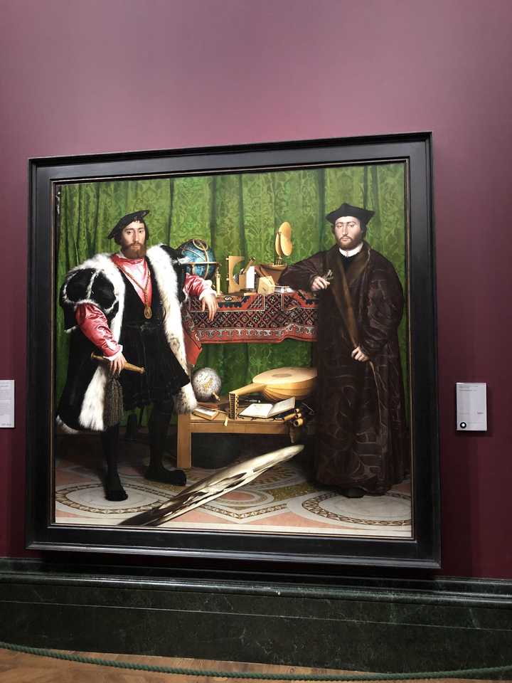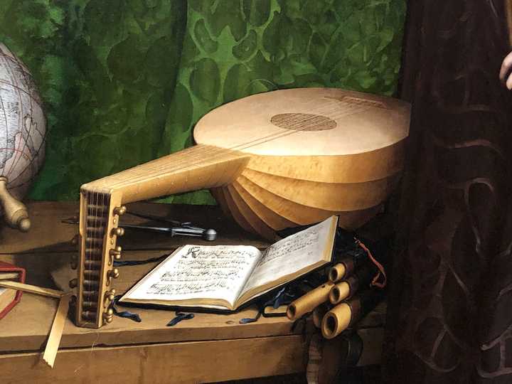 Hans Holbein the Younger:Jean de Dinteville and Georges de Selve,1533 这是小汉斯·霍尔拜因的著名作品《大使们》。 打眼一看,这似乎就是一幅很严肃很正规的肖像画,甚至有些呆板。 如果你仔细看,贴近了看,就会发现其中各种精心布置的物件,比如天体仪、赞美诗集、算数书、鲁特琴等等,看似随意摆放着,实际上各有象征意义。 |