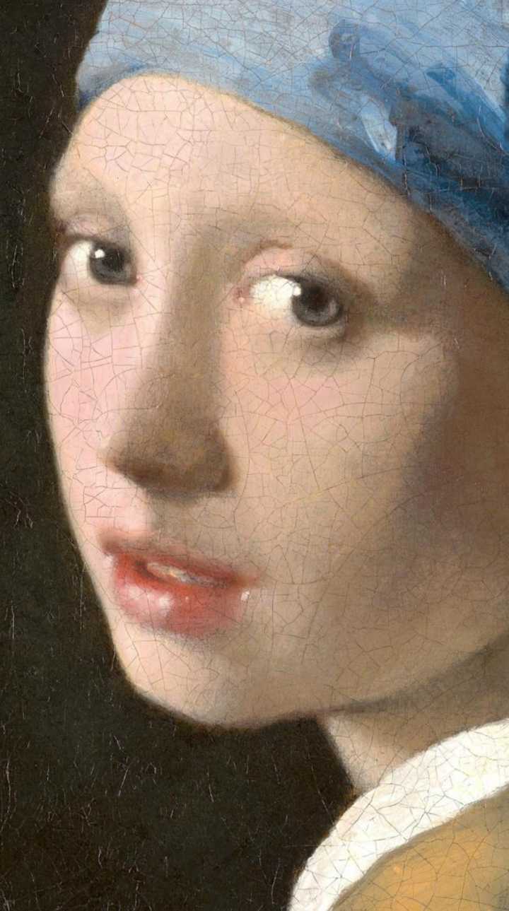 这是小学馆出版的《哆啦A梦扩大原画美术馆》的前言——通过原画品味《哆啦A梦》: 现在很多漫画家都在使用电脑作画,而藤子·F·不二雄在创作生涯中则一直坚持用笔作画。看了用画笔亲手描绘的原画,就能感受到它与印刷在杂志或漫画书上的画面如何不同。要问为什么的话,因为唯独那世间仅此一张的真迹,才拥有“原画的力量”。 细微的笔触和笔墨的浓淡、用修正白小心修改的痕迹、依稀可见的铅笔线条,这些生动的痕迹在印刷出来的漫画中已经消失不见,但仍然以诞生之初的模样保留在原画上,作者倾注其中的能量也随之保留了下来。将原画放大后,这些生动的细微之处也突显出来,迫不及待地向观赏者们诉说自己背后的故事。 那些平时只是为了阅读对白而一扫而过的分镜,现在,通过观赏放大的原画,希望大家能细细品味其中的艺术手法。也希望大家从中感受到作者倾注的能量。本书就是基于这样的想法而诞生的。通过阅读本书——通过不同于“看漫画”的“观赏原画”的体验——希望大家能发现《哆啦A梦》新的魅力所在。 小学馆哆啦A梦工作室的描述其实也可以推而广之到看艺术品与看艺术品印刷出版物的区别,那就是创作的痕迹被遗留在原画上,可以让观赏者更接近创作者的意图,窥探他的感受,甚至发掘出创作者自己也未察觉的潜意识表达。当然他们的表述风格比较玄,大有艺术品的灵魂是无法被复制的味道。 我第一次看到真实的油画,才发现油画表面的笔触是凹凸的,有层次感的,笔刷的褶皱细节根本就是平面印刷无法表现的。 如果是小型印刷复制品,因为分辨率不足,就更难体现原作的真实历史风貌,比如说维米尔的《戴珍珠耳环的女孩》,在小尺寸低分辨率的印刷复制品上是这样的。 |