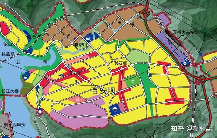 百安坝街道片区的路网 重庆市万州区的前身是万县市(四川省地级市),老城区在长江西岸。 |