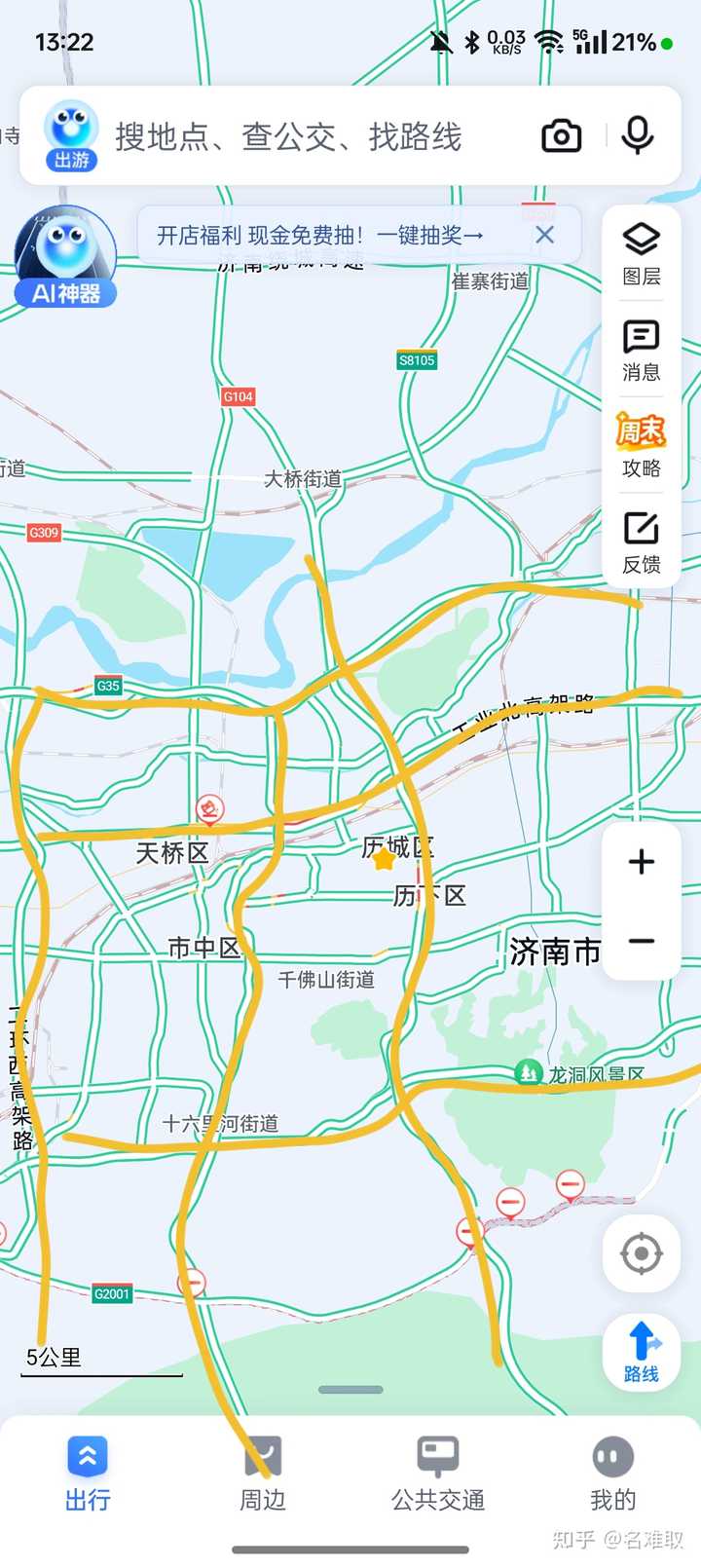 济南。电瓶车比汽车快,满世界电瓶车,全因为此。 1.全城断头路。 老城区路网,纯屎山堆积,而且不优化。主干道双向两车道就算了,有建造时候遇到机关单位变丁字路口的,还有建好后人为拆断的,还有修一半拆迁不了望而却步的。 |
