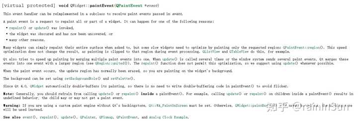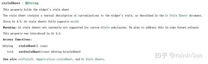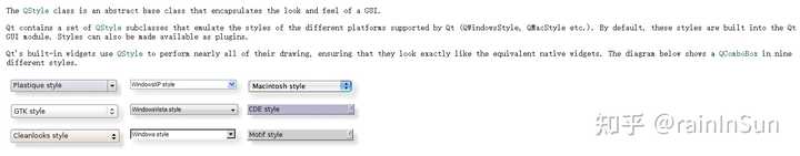 对于复杂的样式不建议使用 styleSheet 实现,这个一直没找到的官方最全的文档,一般简单使用到网上搜索一下,而且这种形式可调试性很,绘制出来有问题很难解决。 paintEvent |