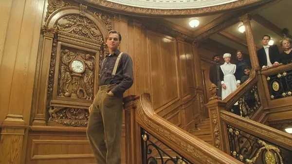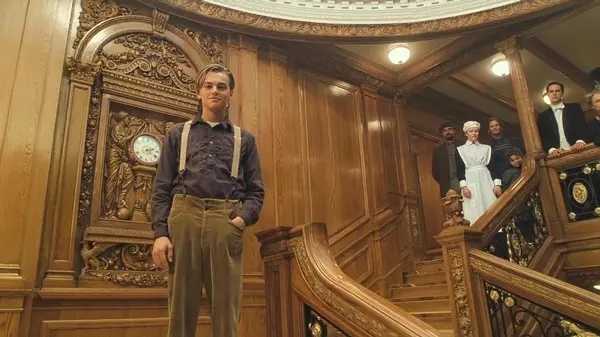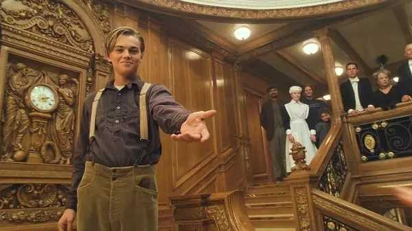 电影《泰坦尼克号》的最后一个镜头,年老的Rose回到了船上。 依然年轻的Jack在楼梯上羞涩地微笑,对她伸出一只手。 |