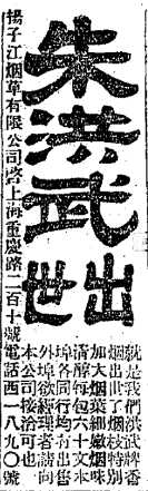 柏烈武即柏文蔚,清末民初活跃于军政界,参加过辛亥革命、担任过安徽都督。当时政局多变,柏文蔚应该是下野了一段时间并寓居上海,大约是受新思潮影响,投资开办了扬子江烟草公司,公司的主打牌号为强国牌和洪武牌。经营了一年多,到了1924年的国民党一大,柏文蔚当选为中央执行委员,重新出山,烟厂自然也就无暇顾及了,要么交由其他人打理、要么就转让掉了。 |