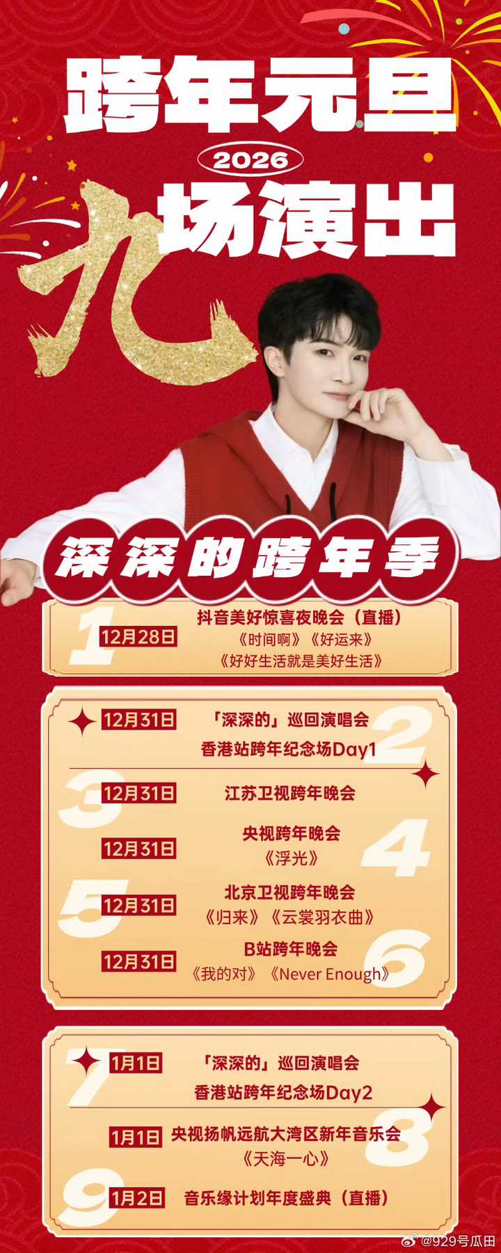我是《人是_》入坑,回来听内娱的周深唱歌。这两年周深唱强混多了,超级爽。爱听,周深多唱。对于之前听欧美歌曲的我,周深唱的《I SEE YOU》,唱的这么牛的强混现场,真的遗憾这首歌错过了最佳宣传期,今年我最喜欢的翻唱现场,呜呜,好可惜。 周深武器多真好,想怎么唱就怎么唱。 还有不到10天,欢迎大家在2026年跨年,周深的两场演唱会或者各大卫视7场晚会来听周深唱各种风格的歌曲呀: 1)首先推荐,香港启德两场跨年演唱会,(3个半小时的现场,这个应该是他歌曲风格多种多样的演唱会,除了歌曲,还有周深给你表演魔术,bushi, 是萌术,体验感超级棒) 2)还可以来B站跨年来听周深独唱《Never Enough》(呜呜,盼了好几年终于唱了,感谢金主给买版权)、《我的对》(这歌真的好听,我家人在电影院一直夸周深唱的好); 3)当然央视跨年独唱《浮光》也不要错过(浮光值得跨年唱,我今年听演唱会只录大鱼和浮光了,生理性的直接打开手机必须录的那种,又美又仙); 4)还有大湾区新年音乐会唱独唱《天海一心》(我喜欢知乎一个up说的一个理由,大致是离火大运的时候,听听周深独唱的纯净的水,平心静气,抚平内心的焦躁之感,身心都愉悦一些); 5)北京跨年,周深独唱《归来》、《云裳羽衣曲》。 6)12月28日 抖的晚会,看到瓜田说是《时间啊》、《好运来》、《好好生活就是美好生活》(这个大家参考就行,目前节目单没有出来,也不是完全确定,好运来,这个选曲是我的爱,时间啊也不错,好好生活就是美好生活有点抖音的大家结束晚安曲的感觉) 7)后面江苏跨年、缘计划盛典我还不知道唱什么,知道了,我来更呀,总之小深各种武器各种唱法灵活运用,喜欢~ |