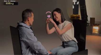 和王石一起拍照片,王石在镜头面前木讷局促,还要田朴珺引导。 |
