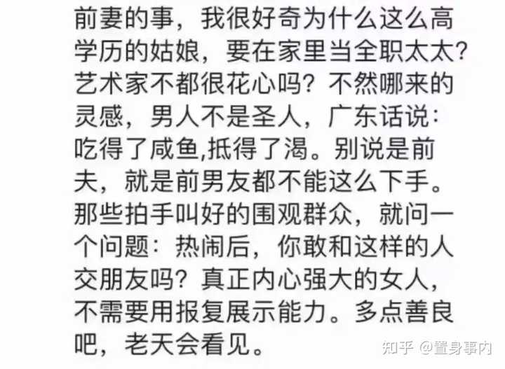 田朴珺的这段文字,引起了网友的争论,有人觉得她说得挺有道理,也有人认为上位的田朴珺没资格对原配说教。 其实想明白一个问题,就发现田朴珺的这番说教,只是站着说话不腰疼而已。 这个问题很简单:第一,田朴珺不是原配,第二,田朴珺不懂一个母亲的付出。 |