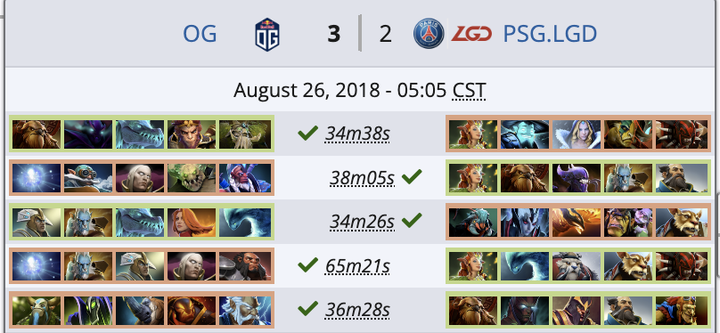 TI8:LGD vs OG,超强个人发挥与团队协作,打满五局,势均力敌。尽管双方也都有犯错,但博弈和悬念是TI决赛里面最强的。双方BP层面花招也比较多,也都有绝活,看起来会显得热闹且内容丰富。 |
