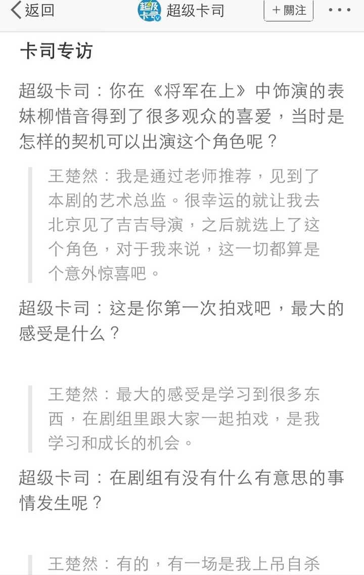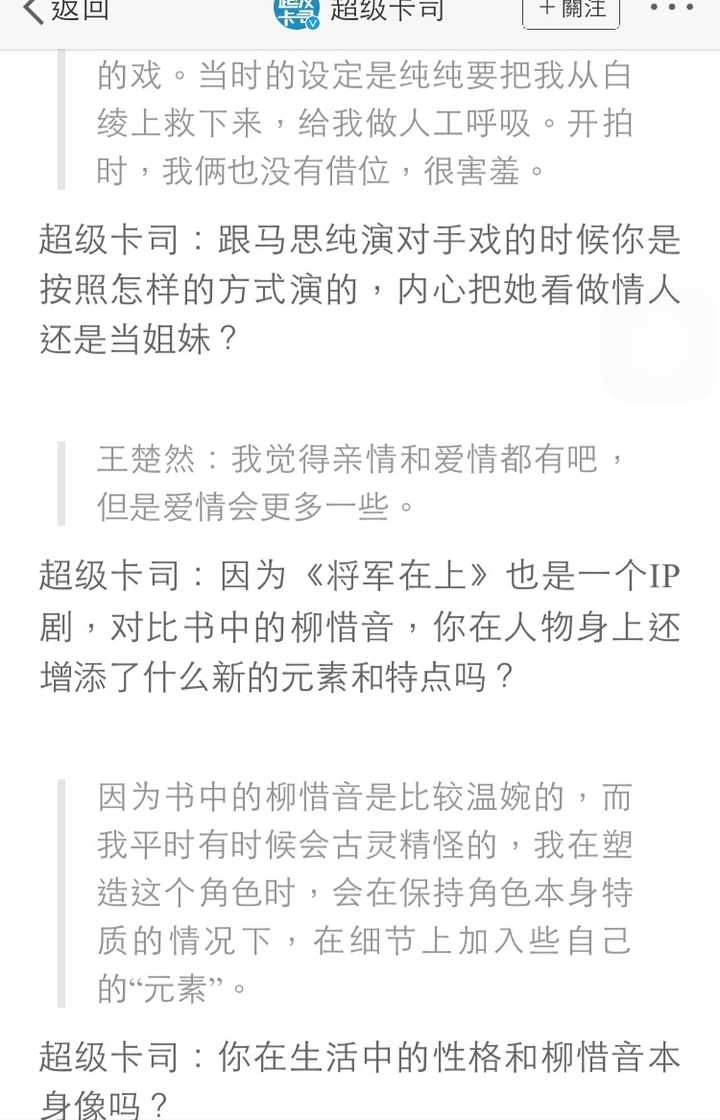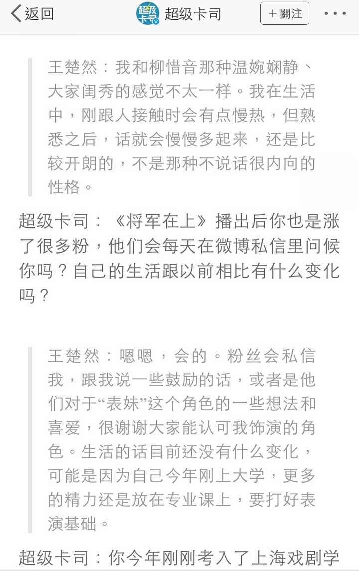 《将军在上》里柳惜音的饰演者王楚然,2017级上戏学生,大家觉得如何? [图片] [图片] |
