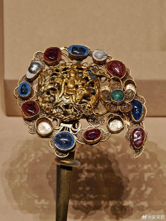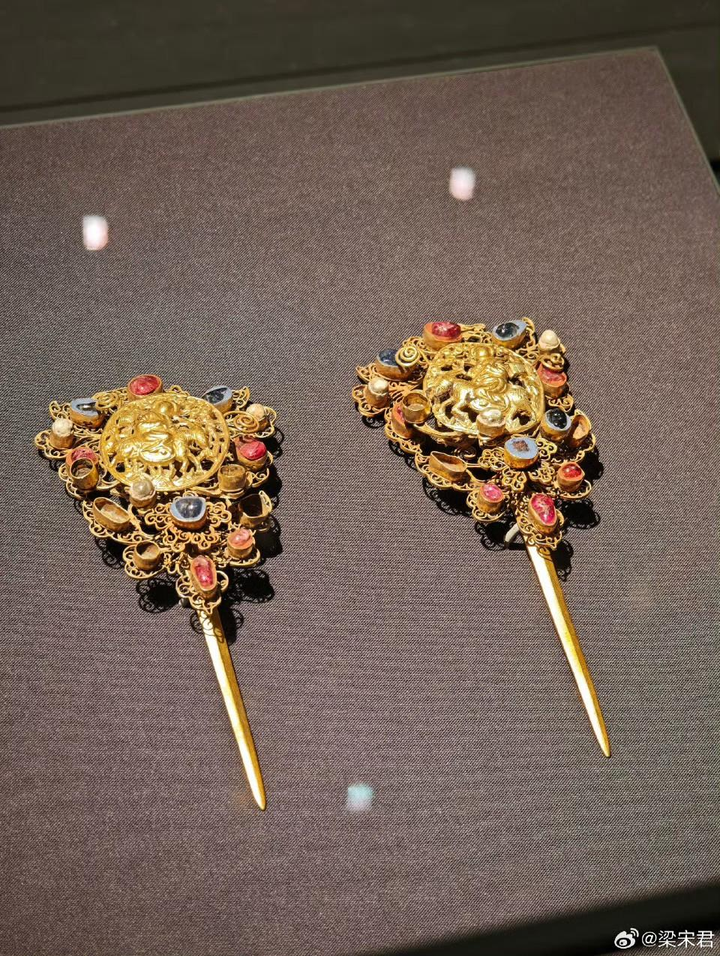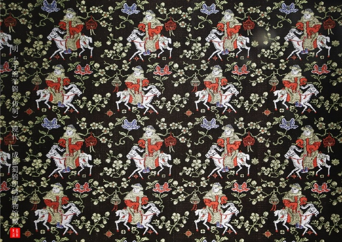 成都蜀锦织绣博物馆 仿制明绵羊太子锦(原件为英国私人收藏家收藏) 绵羊太子图案也不是只有画像和丝织品中使用,首饰也会使用这一图案: |