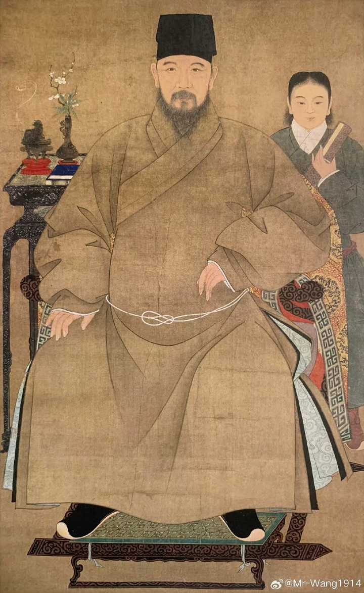 为什么是明制道袍? 扬眉剑舞老师选用了明制男装中最为流行典型的交领明道袍形制,是上下通用、老幼皆着的款式。道袍并非“道士袍”,是明代日常便装称呼。可不系带,也可使用丝绦、带钩等束系。多用天蓝、月白、酱色、松花色等浅淡色。少年也常穿着,晚明一度流行浅红色。即《云间据目抄》“儒童年少者,必穿浅红道袍”。 考虑到春晚节目这个特定场合,选这身也是相当合适的。 道袍在明代上至王公下至庶民皆穿,不像“冕服”或“朝服”那样有鲜明的政治权力和等级色彩; 道袍作为常服,既庄重儒雅又具生活气息,避开了大礼服的严肃感,也契合春节的喜庆氛围。 所以其实扬眉剑舞老师很好地回答了一个问题:在一个需要①模糊阶级性,②强调喜庆气氛,③相对而言还算庄重的场合,如何选一套“足够有代表性”的汉服男装。 比较可圈点的地方在于帽子,可能由于时间紧迫,没有专门做典型的明制巾帽: |