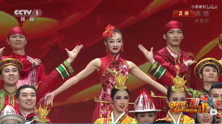 2015年春晚节目《大地春晖》表演56个民族舞蹈秀,汉族穿改良旗袍。 |