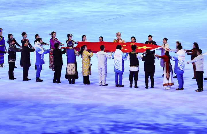 2022年北京冬奥会开幕式,56个民族各行各业代表传递国旗,没有汉服。 |