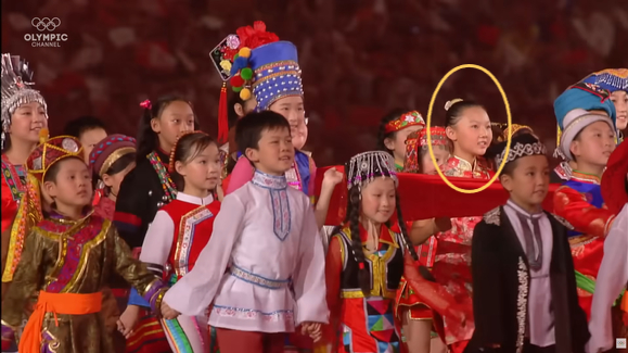 看看以前56个民族一起表演,汉族都是穿什么。 2008年北京奥运会开幕式,56个民族儿童传递国旗,汉族小女孩穿的是旗袍(NBC版有给特写) |