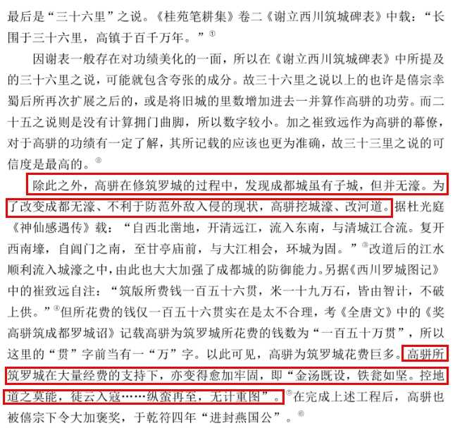 高骈支援成都 然而高骈在西川节度使任上却干了一件非常败人品的事,事情是这样的: 前泸州刺史颜庆复为抵御南诏军的入侵,招募乡勇组建了一支敢打敢拼的精锐部队,名唤“突将”(当年李愬平淮西也曾有这样一支部队,类跳荡、先登),这支部队也确实很能打。但当高骈率领天平、昭义、义成三镇兵马到任之后,便停止了对突将部队的粮饷发放,导致他们有了“忿怨”的情绪,因此引发了众怒。这波操作有点迷,高骈可能是想立威和集权,他给的理由是“皆王卒,命均之。”但这显然不能服众,而且直接克扣他们的口粮这就过分了,莫名其妙把人往绝路上逼。愤怒的突将们冲进门内找高骈算账,高骈吓得躲进了厕所里瑟瑟发抖。还是监军太监出来打圆场才让事情没有闹大。天平镇之兵为保护高骈,甚至自卫过当,杀了数百名无辜打杂的,完事了还给他们按上反叛的罪名,简直毫无人性,而我们的这位高将军还重赏了这群人。 但接下来发生的事情却越发的伤天害理: 到了晚上都入睡的时候,高骈遣牙将带着人冲进突将们的住所,将他们全部残忍杀害,就连家属也一个都不放过,杀完之后将尸体投入江中,实在是可恶至极,一个妇人在临死前还狠狠诅咒了一番高骈全家都不得好死,然此番诅咒到后来可谓是一语成谶了。 【夜遣牙将击杀之,夷其族,虽孕者不贳,投尸于江。有一妇方踞而乳子,将就刑,媪伤之,疑其畏死,谓曰:“以子丐我,一诣曹司也。”妇蹶起曰:“我知之,且饱吾子,不可使以饥就戮也。”见刑者拜曰:“渠有节度使夺战士食,一日忿怒,淫刑以逞,国家法令何有也?我死当诉于天,使此贼阖门如今日冤也!”逮死,神色晏然。蜀人闻者为垂泣。】《新唐书·卷二百二十四下·列传第一百四十九下》 虽然这一系列操作很没人性,但并不妨碍高骈依旧是一位出色的建设人才。前文提到之前他在云南的功绩,在西川节度使任上,他同样很有建树。比如修筑罗城,为的就是加强成都城防,使百姓能够安居乐业。 【惟蜀之地,厥土黑黎,而又????,版筑靡就,前人之不为。非不为也,盖不能也。惟骈果得众心,克成大绩。鸠工揆日,不愆于素,十旬之中,屹若山峙。南北东西凡二十五里,拥门却敌之制复八里,其高下盖二丈有六尺,其广又如是,其上袤丈焉陴四尺。斯所谓大为之防,俾人有泰山之安矣。而甃碧涂塈,既丽且坚,则制磁饰赪,又奚以异。其上建楼橹廊庑,凡五千六百八间。??梠栉比,阇鳞次。】《全唐文·卷七九三》 在修筑罗城的过程中,高骈还对成都城防进行了一些列的改造和完善工作,将BUG一一修复,可见其深谋远虑。 |