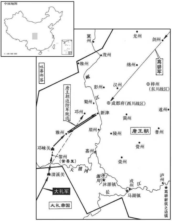 咸通十一年(公元870年),南诏不识好歹,再次与唐廷为敌,发兵攻陷攻陷巂州(今四川西昌),并加大了对两川的进攻力度。唐僖宗乾符元年(公元874年),“云南蛮寇黎、雅二州。”朝廷再一次启用之前对云南战争表现极为出色的高骈,任命其为西川节度使,经略西南。高骈引兵至成都,遣使者走马先至成都打开城门。有人劝他说“ 蛮寇逼近成都,相公尚远,万一豨突,奈何?”高骈却自信满满地回答道“吾在交趾破蛮二十万众,蛮闻我来,逃窜不暇,何敢辄犯成都!今春气向暖,数十万人蕴积城中,生死共处,污秽郁蒸,将成疠疫,不可缓也!”高骈担心城内数十万军民挤在一块会导致瘟疫等疾病传播,故下令开城门,恢复百姓生计,让他们该干嘛干嘛,保持正常的生活。正在围攻雅州(今四川雅安)的南诏军听闻高骈到来,立刻遣使者向唐军请和,随后撤离。高骈引兵至成都的第二日,立刻派骑兵追击正在撤退的南诏军,至大渡河,大破其军,生擒酋长。 【高骈至成都,明日,发步骑五千追南诏,至大渡河,杀获甚众,擒其酋长数十人,至成都,斩之。】《资治通鉴·第二百五十二·唐纪六十八》 此战足见高骈对战机把握的精准和用兵如神。战后,高骈再一次开展了建设工作,于蜀中的要地修复城池堡垒,并且派遣大量军队去驻守,重置军事防御体系,有力地牵制了南诏军队,为成都提供了安全保障。后高骈又斩了作战不利的黄景复,从而整顿军务提高士气。 |