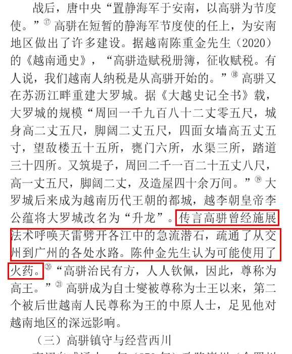 唐与南诏的多次交锋 高骈在短暂的静海军任上,为安南地区做了许多建设。《越南通史》载“高骈造赋税册簿,征收赋税。”除此之外,高骈还在苏沥江畔重建大罗城。 【大罗城的规模“周回一千九百八十二丈零五尺,城身高二丈五尺,脚阔二丈五尺,四面女墙高五丈五寸,望敌楼五十五所,甕门六所,水渠三所,踏道三十四所。又筑堤子,周回二千一百二十五丈八尺,高一丈五尺,脚阔二丈,及造屋四十余万间。】《大越史记全书》 根据学者研究,高骈在任上还曾使用火药疏浚自交州至广州的各处水路,无论是“吏治”还是“民生”方面,都做出了杰出的贡献,可谓文武全才。 |