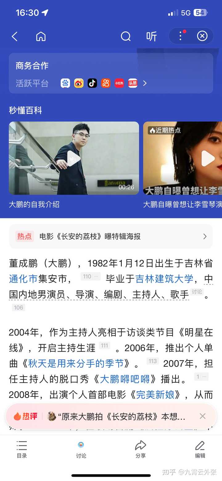 我来说个另外的观点吧。可能很多关注没注意到… 其实大鹏挺“可怜”的,很多人会好奇,为啥大鹏可怜呢?大鹏已经成为导演为啥可怜? 归根结底就是身份的问题,众所周知大鹏是“野路子”出身,大学毕业就在搜狐当主持人,后来借着搜狐的平台和自己的接地气出品了《屌丝男士》,当时的搜狐、优酷、土豆类似于今天的抖音、小红书和快手。三足鼎立之下各个平台都在摸索自己的发展道路,而大鹏作为搜狐的员工,也厚脸皮拉着被采访的艺人客串自己的作品。后来,大鹏终于火了…… 可是娱乐圈从来不是你火就行,或者说各行各业都是如此,作为非科班出身的演员。北电、中戏、上戏是不会认可你的。 |