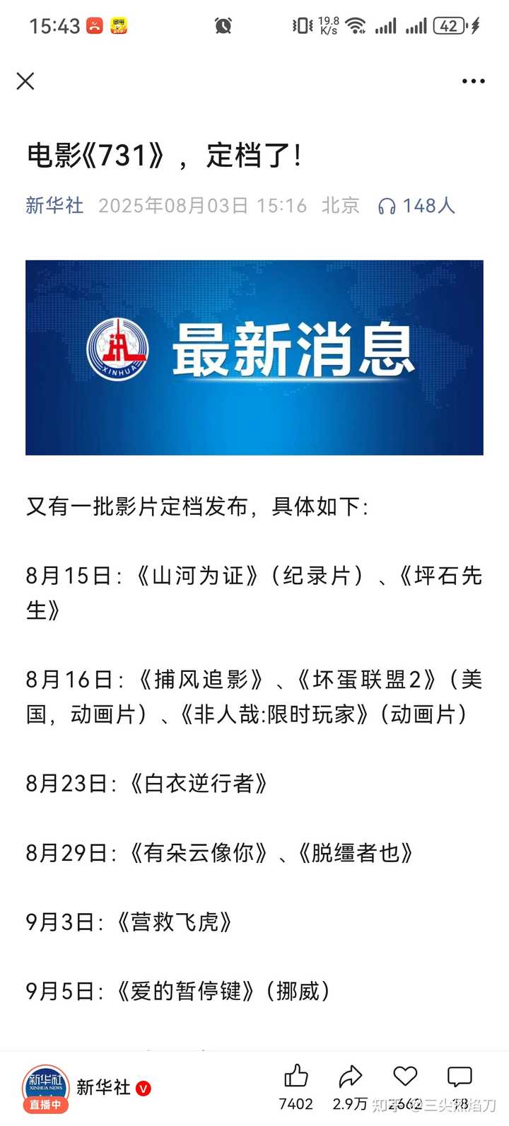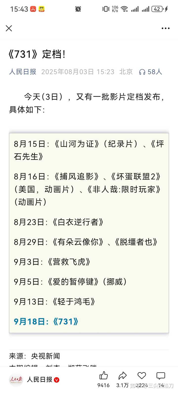 [影视娱乐]电影731官宣定档9月18日,如何评价这个日期,比7月31日强在哪里? |