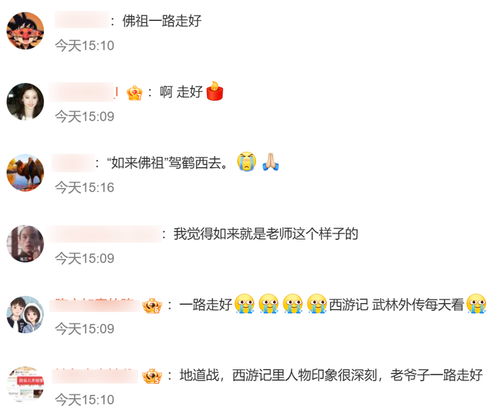 不少网友也在相关媒体报道的评论区表达了自己的哀思,纷纷评论“我觉得如来就是老师这个样子的”、“老人家一路走好”、“如来佛祖驾鹤西去”...... 众多网友以此来表达对朱广龙先生的思念。 |