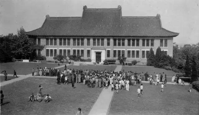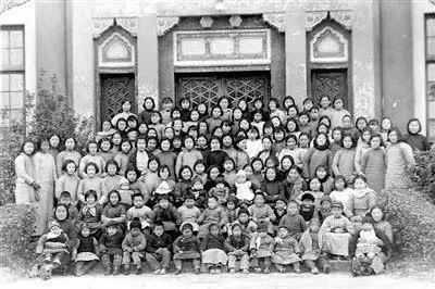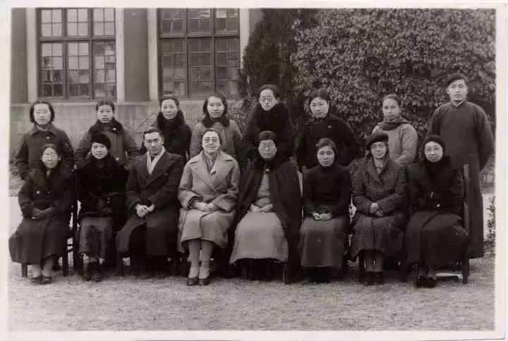 魏特琳女士(前排左四)与金陵女子文理学院难民收容所部分工作人员合影 |