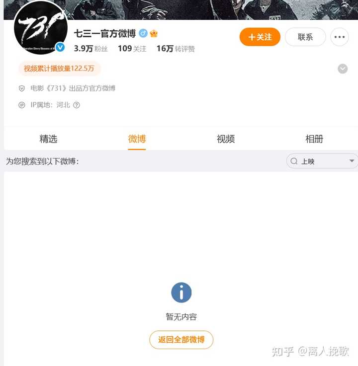 731电影微博 4、搜索了731的微博,使用了“定档”,“上映”,“7月”等相关关键字,完全搜不到相关内容。所以这电影就没有定档,何来“撤档”一说? |