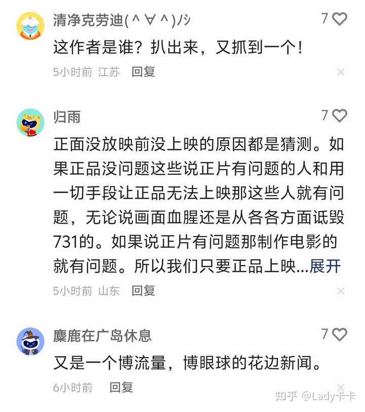 一开始,我也认为是严谨的历史片,被不怀好意的群体举报,上不了影。但又觉得蹊跷,发现这逻辑讲不通,抗日片,又不只有731这一个题材,没必要拿举报当热点啊。 后来发现有小日本人性未泯,救人的剧情的桥段,淡化罪恶,美化侵略者,导演还扯什么人性光辉,就立马好感全无,狗屁,731魔窟里没有一个生还者好么。 什么举报,剧组能要点脸么,无非是剧本粗制滥造,有违历史,过不了审。 731题材,过去的老版电视剧,过去的老电影全都有,比如荒原城堡731,黑太阳,731大溃逃都不错。不是没人拍过,你看看人家怎么拍的。 再不济剧组能不能去几次哈尔滨,看看731罪证陈列馆,取证一下,探访几次馆长,再写剧本,别吃民族情怀这碗饭,还不自知 这种侵华日军犯下的重罪,必须百分百还原历史,不能娱乐化,快餐化,不能参杂一丁点爱情和自创元素。 要用拍纪录片的严谨去对待。 都是展现侵略者罪行的电影,南京照相馆能上,731题材的自然也能,不要老是受害者妄想症,看看自己拍的片,是不是有问题。 就现在剧组展现出来的认知,和导演拍烂片的历史,我不太看好731,别又是利用民族情感给自己牟利到垃圾片,污染了731三个数字。 送礼物 还没有人送礼物,鼓励一下作者吧 |