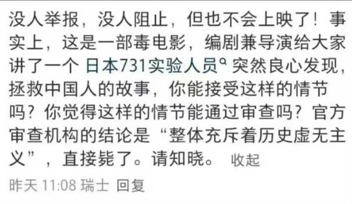 [影视娱乐]《731》电影被举报是什么原因? |