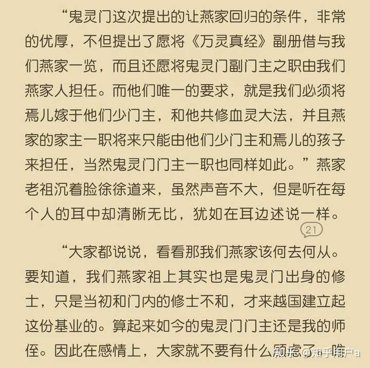 你应该没看小说。。 其实小说至少人界篇很多东西说的很清楚。。 王婵出现的时候,已经筑基期基本大圆满了。。但是王家不能完全掌控鬼灵宗。 所以,王家寄希望的是就是鬼灵宗绝学血灵大法大成,从而彻底掌控鬼灵宗。。 而血灵大法这个功法一方面威力奇强。这个根据人界篇中对各种魔道功法的来看,个人认为应该能排到前三。。也就是这个功法只要修炼到结丹后期,那么两人联合至少有相当于一个元婴期的水准。 而从后期王婵协同探宝的剧本来看,的确当时结丹后期的王婵和燕如嫣联合不输元婴初期。如果两人修炼到元婴中期,达到龙晗夫妇的地位未必不可能。 唯一的这个功法的双修的男女需要资质奇高。王婵本身暗灵根,而燕如嫣是天灵根。都是难得的天才。 而根据书里本身所写,当时整个天南, 像燕如嫣一个方面天资奇高,另一个方面可以被他们鬼灵宗拿捏的人,其实几乎可以算是绝无仅有。 也就是王家想借助元婴修士数量和未来潜力,绝对掌控鬼灵宗,没有比燕如嫣更加合适的人。 虽然当时看似燕家算计的严密,但是分析里何尝不是形势比人强?? 而且原本算计几乎都是千年之后的事情,一个最高结丹初期的家族算计数个元婴期的宗门,本身就是就有点扯淡,而且你自身没有元婴修士,你觉得你能掌控宗门?他真有把握完全掌控局势。。说白了,无非就是看命。最后,就是因为韩立这个异数,看似燕家算无遗漏,其实不过歪打正着。而且燕家接手的鬼灵门已经大损的无以复加。 有一说一,王婵对燕如嫣并不差,并没有那么差,不然王婵死后,燕如嫣不会那么对韩立回话,说什么夫妻之情。甚至主动求韩立放王婵一马。毕竟这根本与燕家的算计根本不符。。 还有最后,韩立分魂重返人间界的讲诉:洛云宗衰败,而黄枫谷崛起。 但是不要忘记,越国六宗都有隐藏任务,就是重返越国恢复宗门,而占领越国的正是鬼灵宗。。 那么是不是暗示,黄枫谷崛起后,有可能燕家掌控的鬼灵宗被灭了?? 是不是最后燕家的算计还是一场空?? |