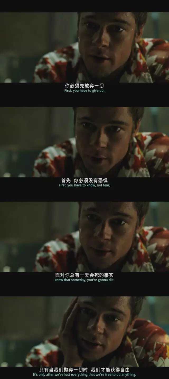 触发认可搏击俱乐部的条件在国内其实挺苛刻的。 你从小就是乖孩子,在规矩内做事,在期待中表达。一切顺风顺水直到早年间支持你的人开始力不从心,那一圈圈的规矩、期待慢慢结构、消失。你被迫在本应该独当一面的年纪开始从零思考人生的意义,在痛苦、挣扎、反复的自我怀疑中真正构建出自己的三观。 国内实际上没有那么自由,整个社会一直有无穷无尽的规矩和期待,你应该上个好大学,找个好工作,在30岁前结婚生子,买房子,组建幸福的家庭,要有责任有担当,上养老人下鸡娃,工作要出人头地,升官发财。 当你充满了反叛精神,把这一切世俗约束摆脱掉后,你会不得不面临一个问题——在满足了基础的生存需求后,你到底想要什么。 这可能不是连买房都需要掏空未来30年收入的,挣扎在温饱线上的人会主动去考虑的问题。 |