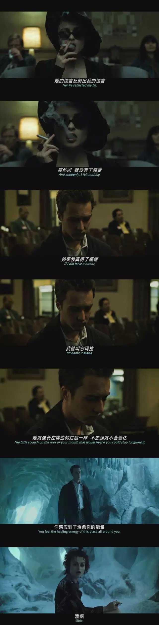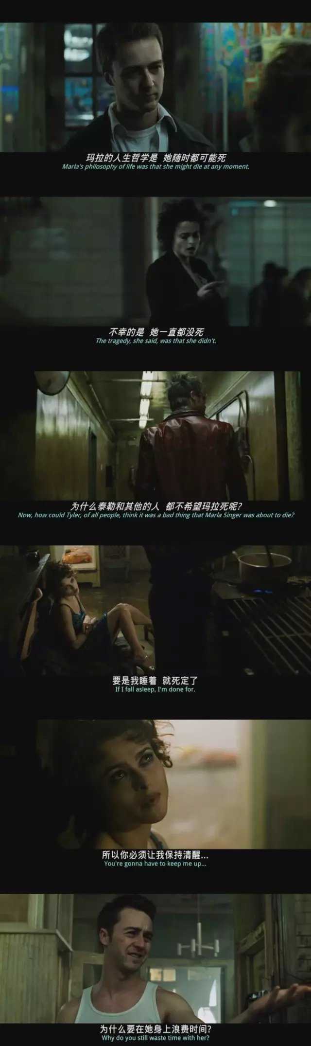 因为你没对现实中的一切怀疑过。 我们的上学、上班、婚姻、消费、理想、幻觉都是社会强加给你的,你的价值观是被塑造的,你只能在现行体制框架内思考一切。但是,你从来没有多问一句,这些东西最终的意义是什么,我们人生最终的归宿是什么。 男主思考了,而且是过度思考了。然后陷入虚无主义,然后开始分裂出暴力对抗虚无的人格,不论是否正确,他至少经过思考了。而你呢? |