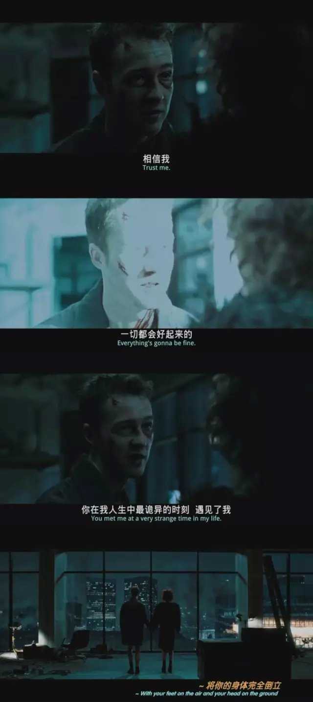 因为你还没有背上房贷,还没有开始跟着生活指南买一堆乱七八糟怎么搭都不好看也不好用的家具家电,还没有到处飞来飞去出差在一个城市睡着在另一个城市醒来,还没有被上司被客户骂得狗血淋头还不敢出声……有一天你准备第二天开会的汇报材料加班到半夜又累又困结果闭上眼却怎么都睡不着的时候,你脑子里会不会突然冒出一个想法:要是明天突降暴雨全城交通瘫痪就好了/要是上班途中遇到车祸把腿撞断就好了/要是半夜一场大火把房子烧没就好了/要是有人用枪指着头让你马上辞职去自驾318就好了,这样明天就不用汇报了,这个时候你应该就可以看懂《搏击俱乐部》了。 |