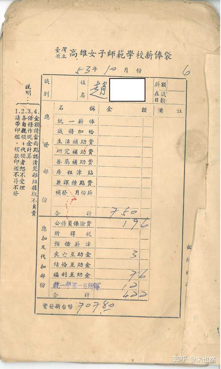 1964年出版的原著《烟雨濛濛》,故事背景就是60年代的台北。 第一章写依萍去陆家要钱: 我咬了咬嘴唇,开始计算我该问那个被我称作“父亲”的人索取钱的数目——八百块钱生活费,一千块钱房租,一共一千八百,干脆再问他多要几百,作为我们母女冬衣的费用,看样子,我这双鞋子也无法再拖过这个雨季了。 然后: “哦,爸,”我急急的说:“我们该了两个月房租,是无论如何不能再拖了,而且,我们也需要制一点冬衣,天气一天比一天冷,又快过阴历年了,妈只有一件几年前做的丝绒袍子,每天都冻得鼻子红红的,我……我也急需添制一些衣服……如果爸不太困难的话,最好能多给我们一点!”我一口气的说着,为我自己乞求的声调而脸红。 “你想要多少呢?”爸眯着眼睛问。 “两千五百块!”我鼓足勇气说,事实上,我从没有向爸一口气要求过这么多。 ……………… 也就是说,依萍像她预想的那样,多要了七百块。 而她之所以要开这个价,是因为她一到陆家,就从梦萍口中得知,陆振华给宝贝“儿子”尔杰新买的兰陵牌脚踏车,花了四千块。 然后她就被陆振华拿鞭子抽了一顿。 八百块什么概念呢?高雄师范大学保留了一份1964年的薪俸袋。高雄师大前身,台湾省立高雄女子师范学校的老师,月薪750。 陆振华给依萍和文佩的,差不多就是公立学校老师一个月的薪水。 |