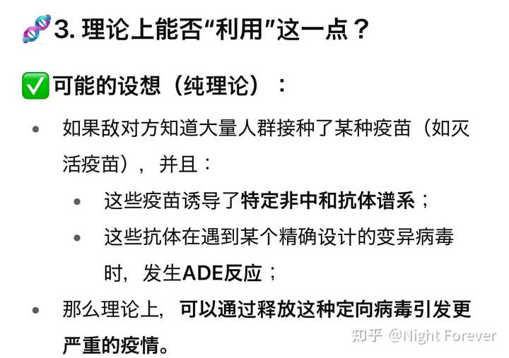 不实际, 主要原因是吃力不讨好, 你只要直接往中国多地人口密集的地方投毒一个高传播高潜伏高致死的病毒, 然后自己封关 再藏一个特效药,当病毒蔓延到自己的时候拿出来, 这样的效果是中国人受害最大, 中国周边那一圈基因相近、历史混血多的地方次之。 这不就和基因定向病毒实现了几乎一样的效果, 而这都是很成熟的老技术了, 排除ppt骗经费的动机,为什么还研发新东西呢? 区别就是中国如果发现一个病毒是基因定向, 那我们可以立即判断疫情是人为的, 只要是人为投毒就好追踪,好追踪就好防治, 针对特定的疫苗研发也会更快, 所以其实效果反而会更差。 病毒最好要时刻处在自然变异中,变种一大堆,症状和传播途径千差万别,源头也追不到,那才更难应对 |