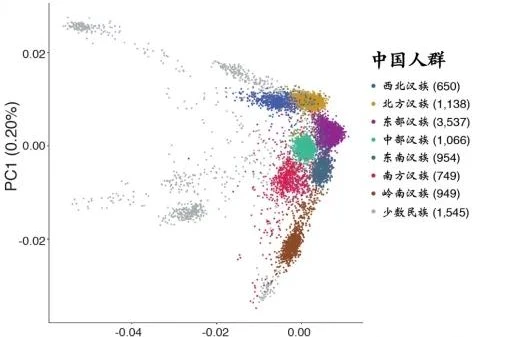 该研究覆盖中国七大地理区域,涉及人口排名靠前的汉族、壮族、回族、满族、苗族、彝族、藏族和蒙古族,显示了中华民族跨地理区域人群遗传背景的多样性和复杂性,首次揭示了汉族人群可显著分成 7 个亚群: 北方汉族、西北汉族、东部汉族、中部汉族、南方汉族、东南汉族、岭南汉族。 |
