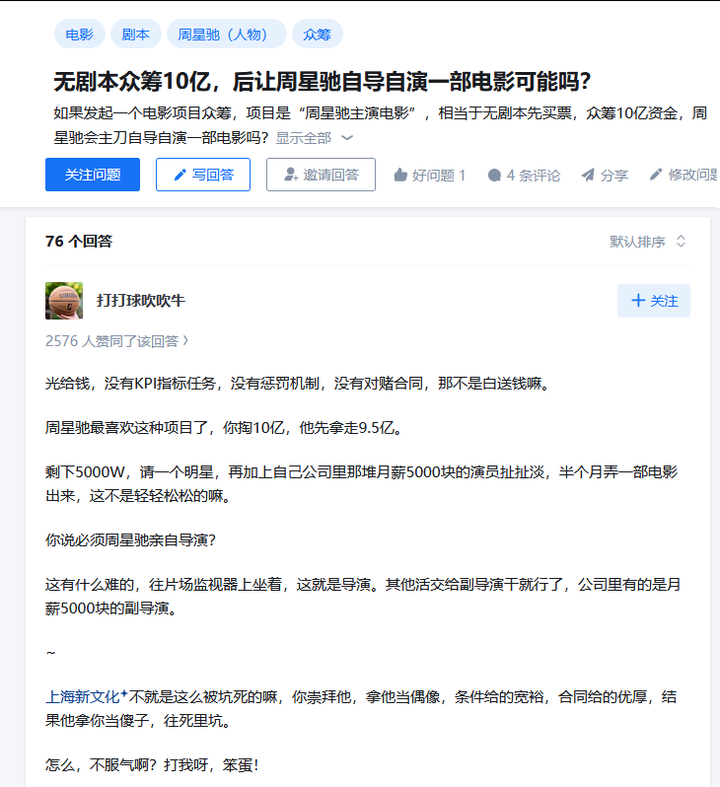 [影视娱乐]无剧本众筹10亿,后让周星驰自导自演一部电影可能吗? |