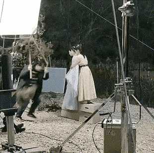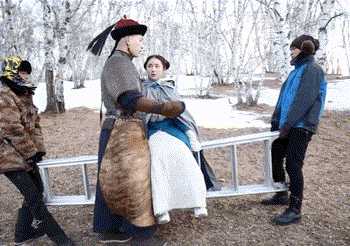 《梦回大清》一场公主抱情节,男二在镜头前是轻松抱起女主,实际上镜头下移是两人用梯子抬着女主。 |