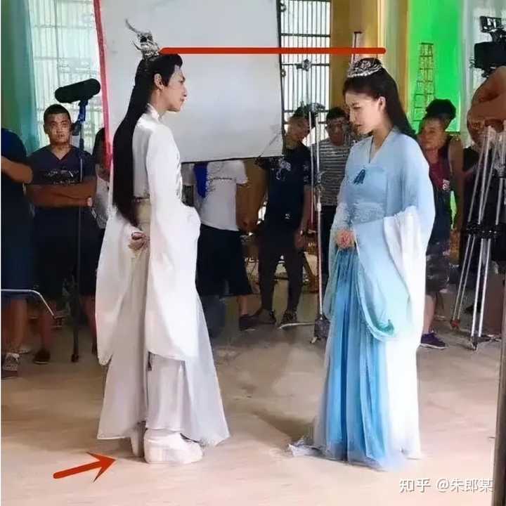 当时跟黄晓明搭戏的女演员,是身高180cm的女模特,官方身高179cm的黄晓明站在她身边,居然矮了大半个头。现场紧急用上了箱子,剧组的场工,跪在地上给晓明哥“铺路”,维护教主的面子。 |