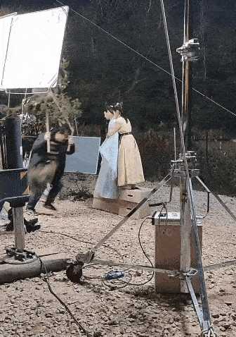 其实像这种定点的近景同框,还是很容易的,演员只要一直站在箱子上就可以了。 最困难的,还得是两人行走散步的镜头,这就需要剧组用箱子铺出一条路出来。 李一桐和胡一天拍个简短的散步镜头,浪漫背后需要用7、8个箱子铺路,也是蛮不容易的。 |