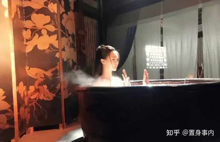 有时候剧情需要“出浴”的画面,镜头中水波潋滟,女演员们湿发半挽,其实都是错觉和假象。 |