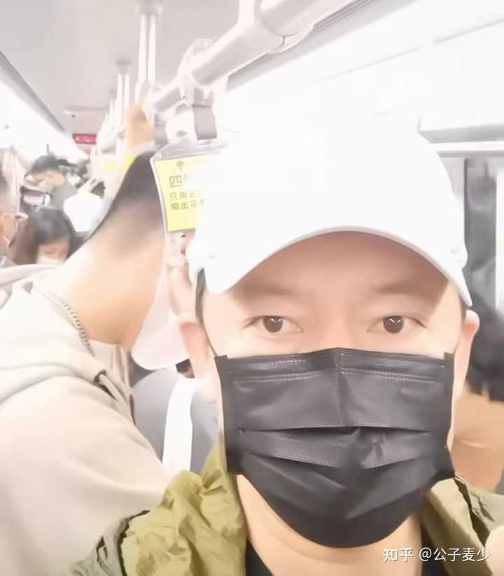 在视频里,何政军选择坐地铁出行,并没有坐私家车,可以说非常接地气。 进入地铁后,他抓住扶手,站在车厢里,随后把镜头对准自己。 只见他穿着绿色外套,头戴一顶白色棒球帽,佩戴黑色口罩。 |