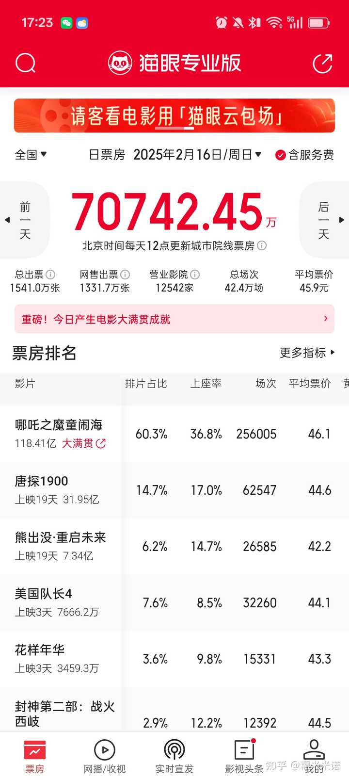 《魔童闹海》可是在《唐探1900》《熊出没》《封神2》等一众大片围剿下硬生生从23.2%的排片、11.7万的场次,在历经19天的鏖战最终拿下了60.3%的排片、25.6万的单日场次。这压根不是《731》所处的绝佳环境所能对比的 |