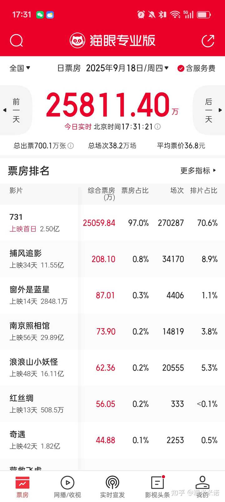 [影视娱乐]如何看待电影《731》破《哪吒2》的记录,成为内地影史单日总场次冠军? |