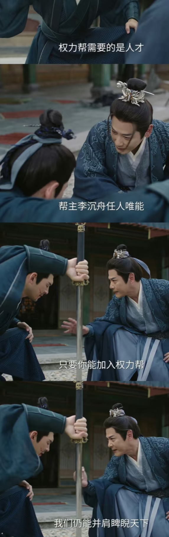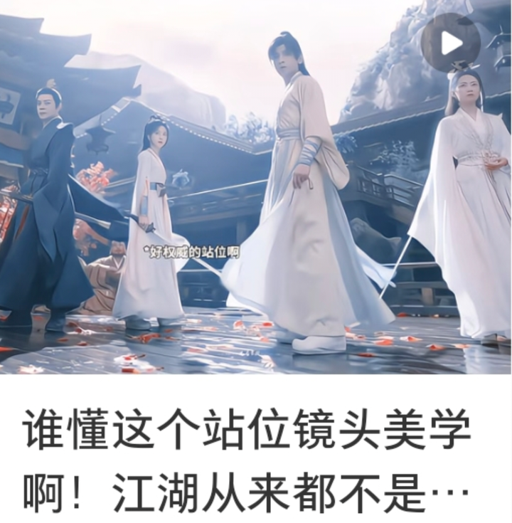 晚上追更完后,想起下午看到的一个视频标题“谁懂这个站位镜头美学啊!江湖从来都不是一个人的江湖”,觉得无比讽刺。因为看完18集会发现,图上最右边的那个掌门是权力帮的卧底。 赴山海,赴的是权力帮的山海,不是熙熙攘攘的江湖。在权力帮里插了个武林,江湖侠义似乎只是男主一个人的侠。剩下正派有侠义的基本上死了,比如今天的两位大师,传完功力被身边的卧底刀了(这个卧底从另一个角度看还挺有情有义的就是说,死之前还要解释自己是为了报权力帮的救命之恩)。而萧家大哥因为外人几句话就不信任自家人,导致萧秋水全身武功被废手脚筋尽断,萧秋水直接差点没了的时候没有人责怪大哥,家被灭了,大哥二哥把责任全怪萧秋水上,对刚捡回一条命的萧秋水又是打来吐血又是拳打脚踢的。打了就算了,打完人还直接走了,后面收敛牺牲的人、为他们安葬筑碑都只有萧秋水和其他NPC——萧雪鱼和那两个结义兄弟。 让人看下来就觉得编剧在左右脑互搏,权力帮hr能说会道,而且还救了一大波人然后安插到正派卧底十几年,有这份坚持干什么都能成功的…… |