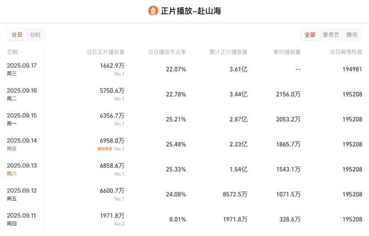 到昨天,它的播放量只有5750万,竟然跌了1200多万,跌幅超17%。 |