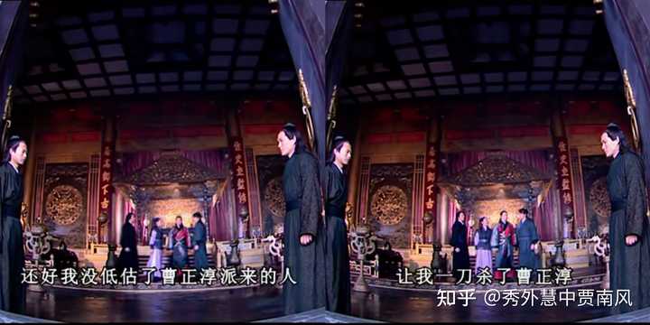 我举一个96版《笑傲江湖》,令狐冲和林平之一起回到华山派的站位例子,一看就知道问题在哪里。 |