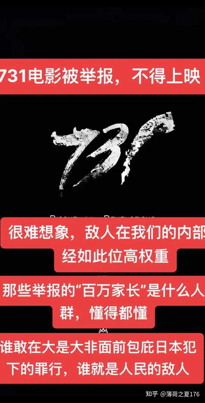 如何评价电影《731》的上映?你去看了吗?205 赞同 · 13 评论 回答 想要了解731部队的罪恶,看这些就够了,这些内容是完全免费的。 群众想要了解731部队的历史,完全不需要看某些杜撰历史的电影。 官方与权威媒体相关报道: 用人体做试验的731部队,负责人竟在美国帮助下“全身而退”?_哔哩哔哩_bilibili 【直播回顾】七三一部队新罪证发掘过程详解_哔哩哔哩_bilibili 永远不能忘!永远不会忘!永远不敢忘!_哔哩哔哩_bilibili 共同的使命|731部队:被尘封的罪恶_哔哩哔哩_bilibili “孩子的标本,有很多” 731部队少年兵揭露日本细菌部队罪恶_哔哩哔哩_bilibili 外网评分对比,可别说别人只针对《731》打低分,而特意给《南京照相馆》打高分。 |