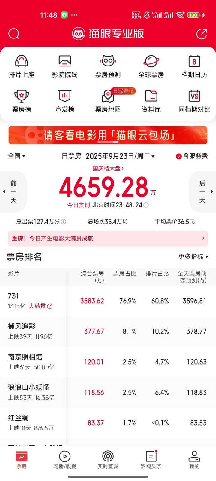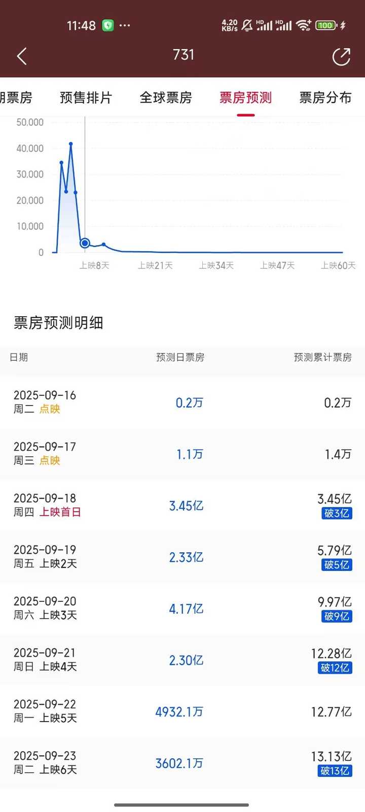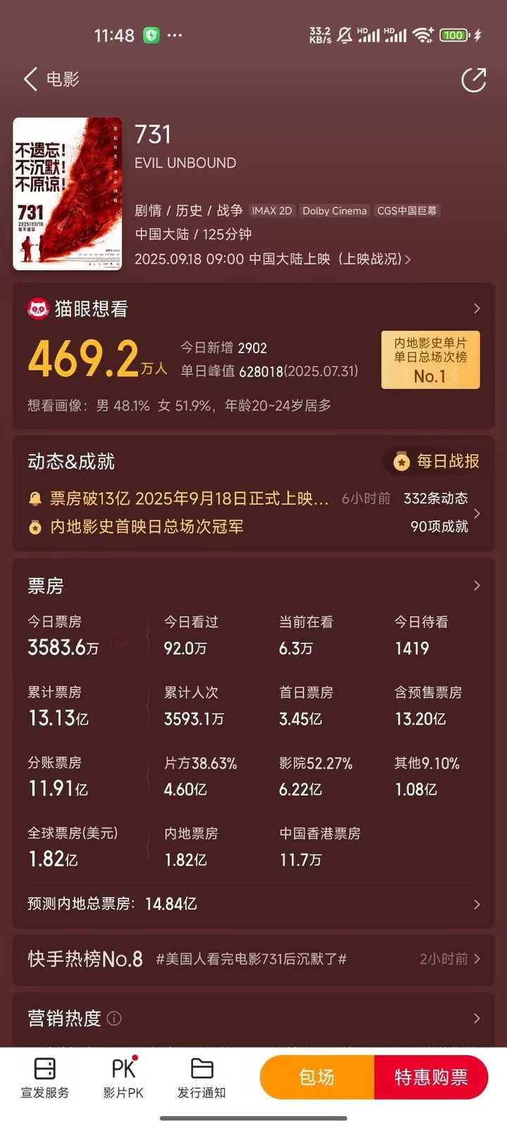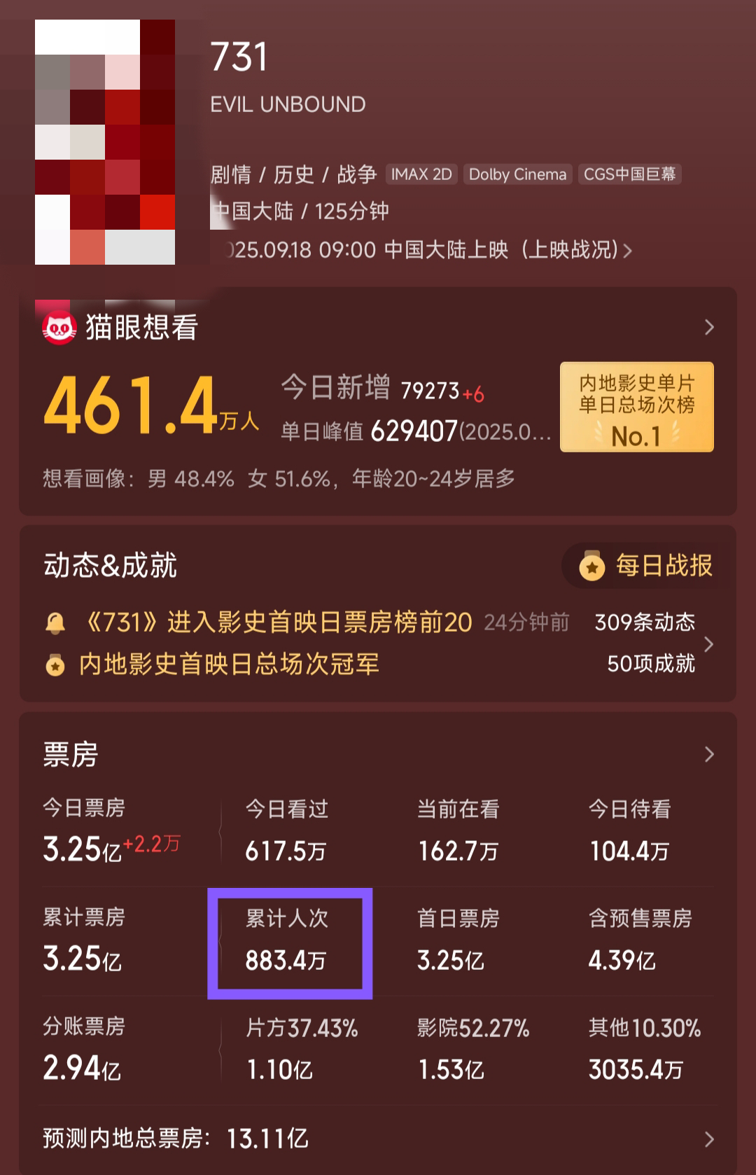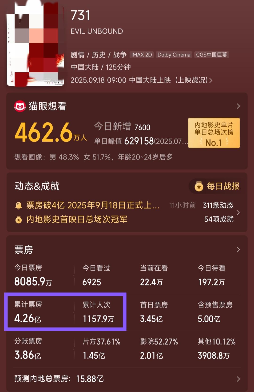 显而易见并不是 因为根本就没有任何正常人会期待 731 这个电影 今天的新数据截图我贴一下 |