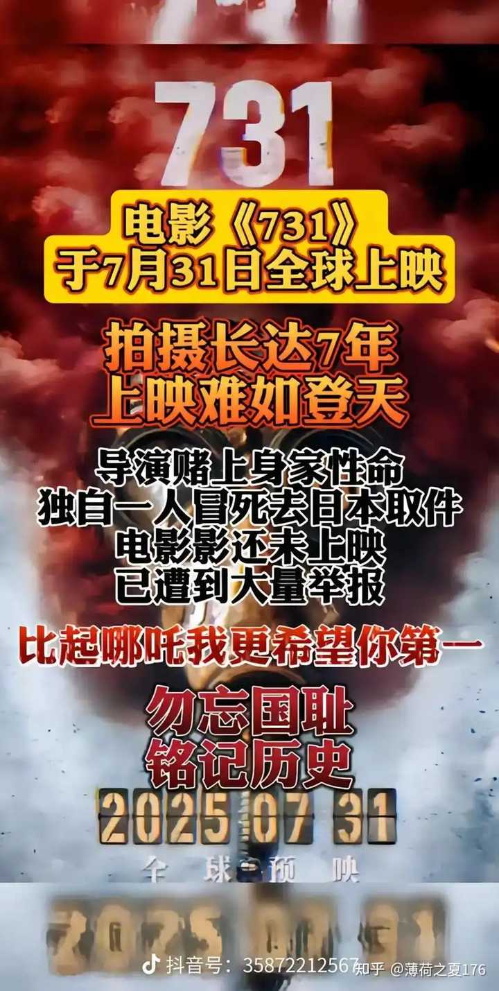 啊? 改变的节点是今年,刚好是世界反法西斯战争80周年,是个绝佳的上映时机,怎么看都是在今年上映最合适,就搞了个7月31日“全球预映”的消息公布,然而在即将到期时,又继续跳票。 本来他还可以故技重施,又是说什么家长举报,百万举报,所以不能上映那套,可惜,计划之外的意外出现了。 暑期档《南京照相馆》上映,并且迅速火爆出圈,对《731》和赵某无疑是当头一棒。 《南京照相馆》取材自“南京大屠杀”这一历史事件,同属于某些营销团队搞阴谋论时容易被举报和迫害的题材。 既然《南京照相馆》能顺利上映,不可能偏偏只有《731》才有阻力吧?总不能二鬼子就只迫害《731》不让它上映,而特地放过《南京照相馆》? 感觉到不对的人越来越多,开始觉得《731》剧组所谓的压力是假的,这时候赵某差不多就是骑虎难下的状态。 |