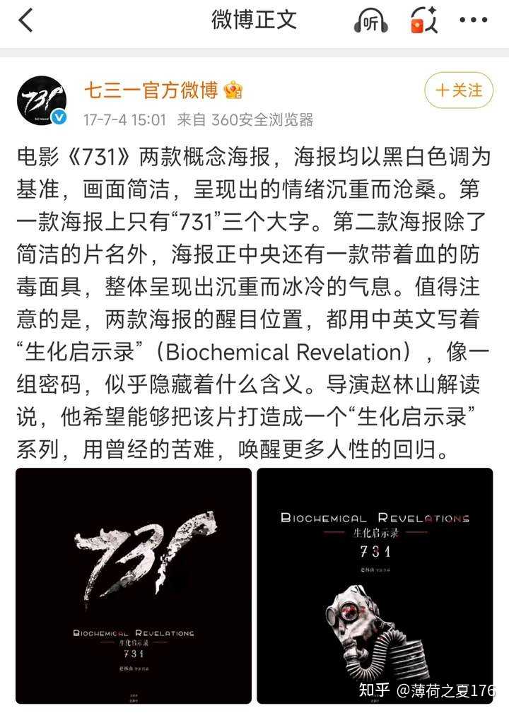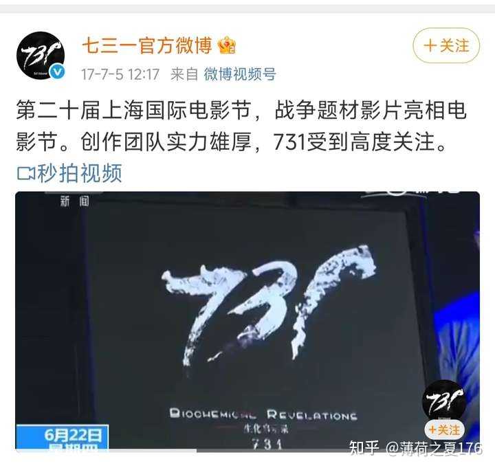 这么多年了,电影的官方微博名字还是用这个有歧义的,明明用“电影《731》官方微博”就很准确,却用了“七三一官方微博”容易被曲解的这个名,有可能会让人曲解成七三一部队的微博哦。 要么蠢要么坏,或者兼而有之? 我关于《731》的回答 |